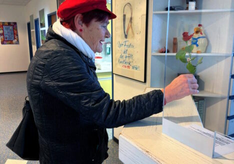Mitglieder des Ortsverein Gartenstadt veteilten Blumen.
